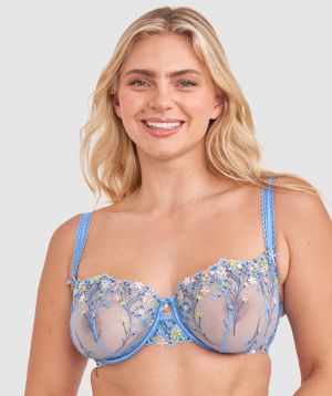 • - Multi-toned floral embroidery over sheer mesh